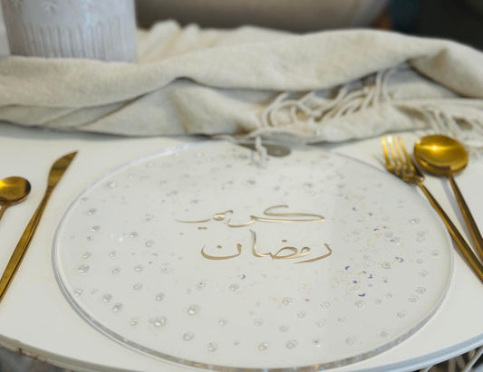 Radiant Ramadan Mubarak Under Plate: Elevate Your Iftar in Style